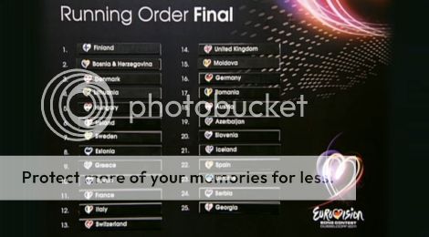 In Düsseldorf vond zojuist de persconferentie en loting plaats van de 10 landen die zich hebben geplaatst voor de finale van aanstaande zaterdag. Na een rustig begin met onder meer Finland, Denemarken en Litouwen barst het popgeweld los met zes flinke uptempo-nummers (met Griekenland als kleine uitzondering). Het bij de bookmakers favoriete Frankrijk volgt hierna.